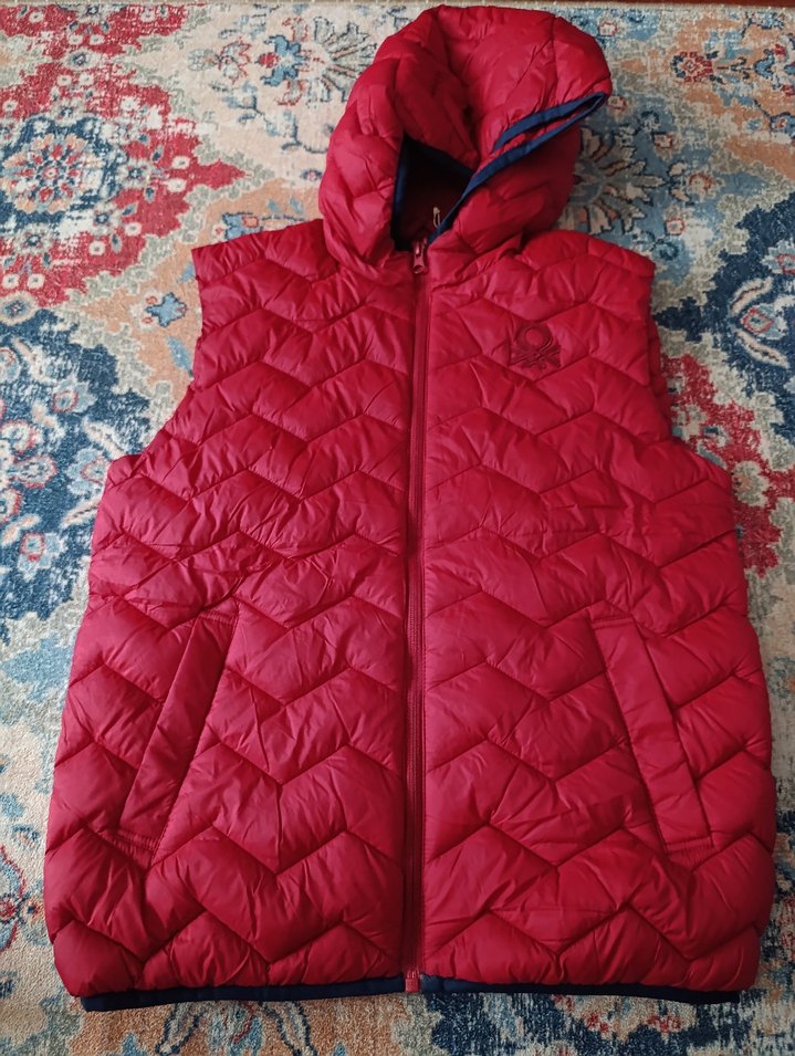 Kırmızı renkli, kapüşonlu ve fermuarlı erkek çocuk yeleği. Kolsuz ve yumuşak, sıcak tutan kumaştan üretilmiştir. Sokak stiline uygun rahat bir modeldir.