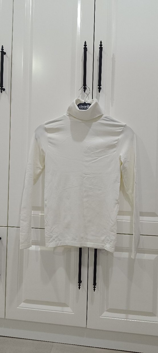 Beyaz, balıkçı yaka ve uzun kollu, ince kesim kadın kazak. Yumuşak ve sıcak kumaştan, minimalist ve sade tarz için uygundur. United Colors of Benetton marka, kırık beyaz renkli boğazlı badi. Kumaşı polyamid karışımlı, teknik ve çok esnek bir yapıdadır. Vücudu tam sarar ve toparlar. Kullanım Alanı: Hem günlük ceket içlerine çok yakışır hem de teknik kumaşı sayesinde spor (pilates, yoga, yürüyüş) veya kayak içliği olarak kullanıma uygundur. Durumu: Formu bozulmayan, hızlı kuruyan ve ütü istemeyen pratik bir kumaşı var. Fit: Slim fit (vücuda oturan model)."