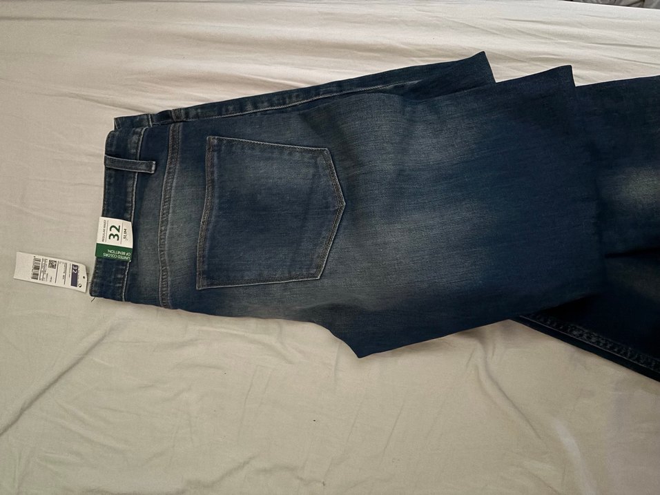 Benetton Düğmeli Gri Mavi erkek Kot Pantolon