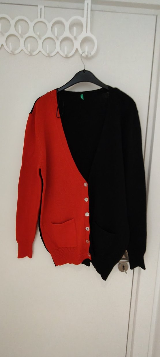 Benetton Düğmeli Kırmızı Siyah Kadın Hırka