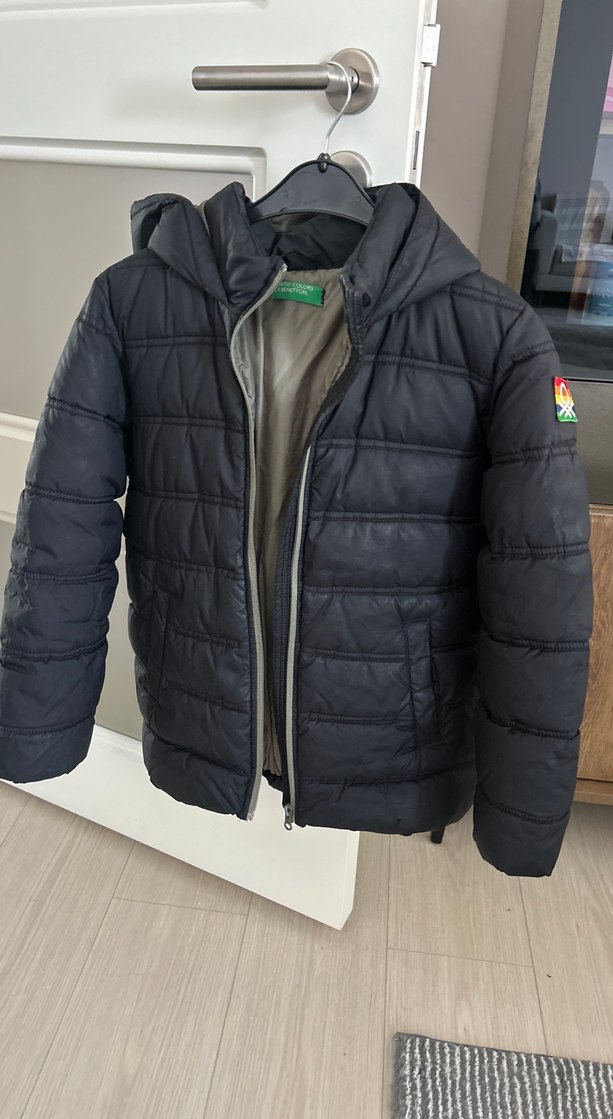 Benetton Erkek Çocuk Kapüşonlu Fermuarlı siyah Mont