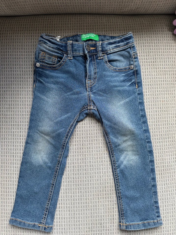 Erkek çocuk için mavi denim pantolon, normal kesim ve tokalı bel detayına sahiptir. Desensiz, trend günlük stile uygundur. 2 yaş