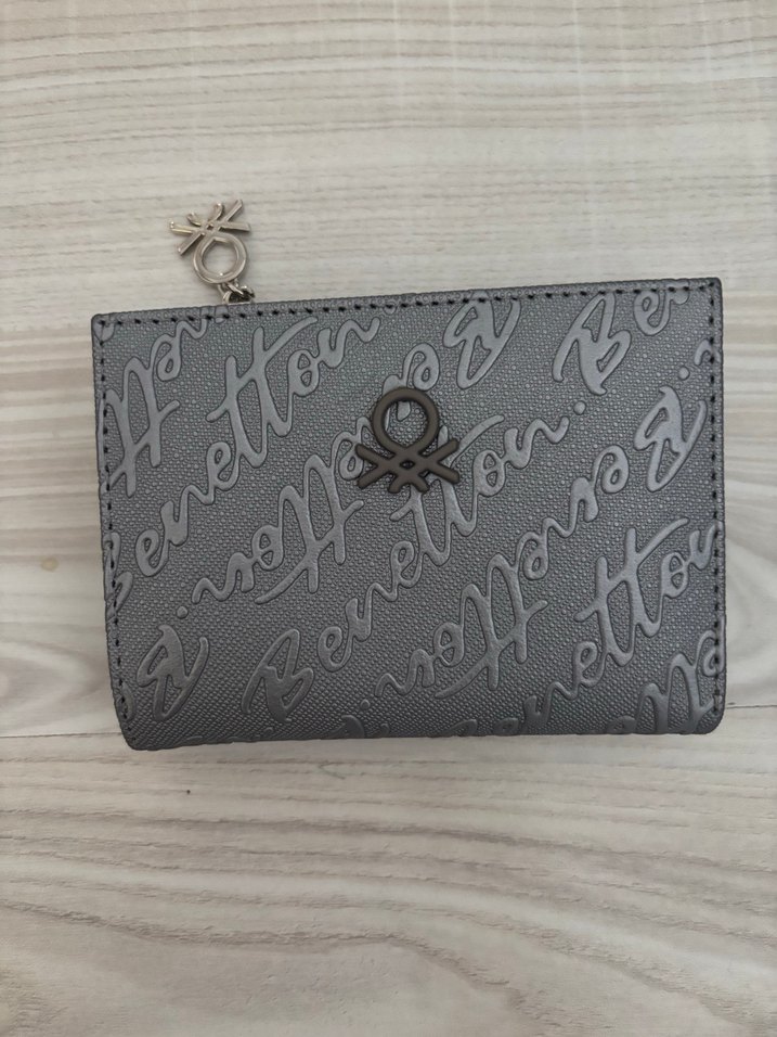 Benetton Gri Desenli Deri Kadın Cüzdan Orjinal
