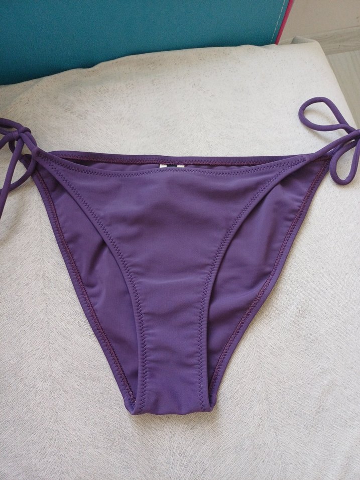 Mor renkli, ipli yan detaylı kadın bikini altı, sıkı oturan kesimiyle plajda cesur ve zahmetsiz şıklık sunar.