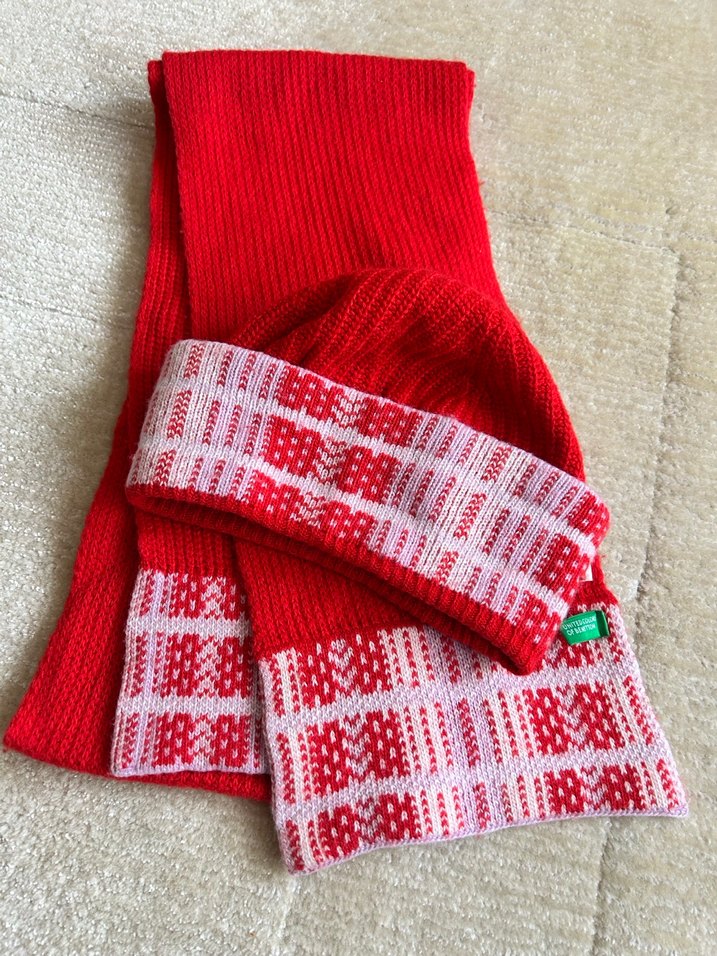BENETTON Kırmızı Çocuk Örgü Bere ve Atkı Seti