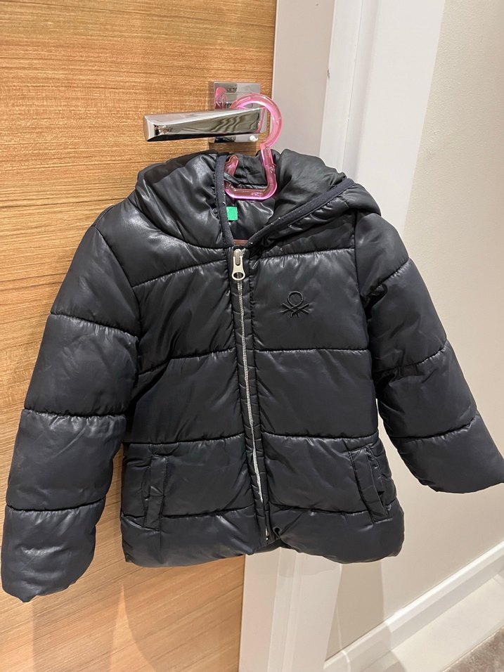 Benetton Kız Çocuk Siyah Kapitone Mont