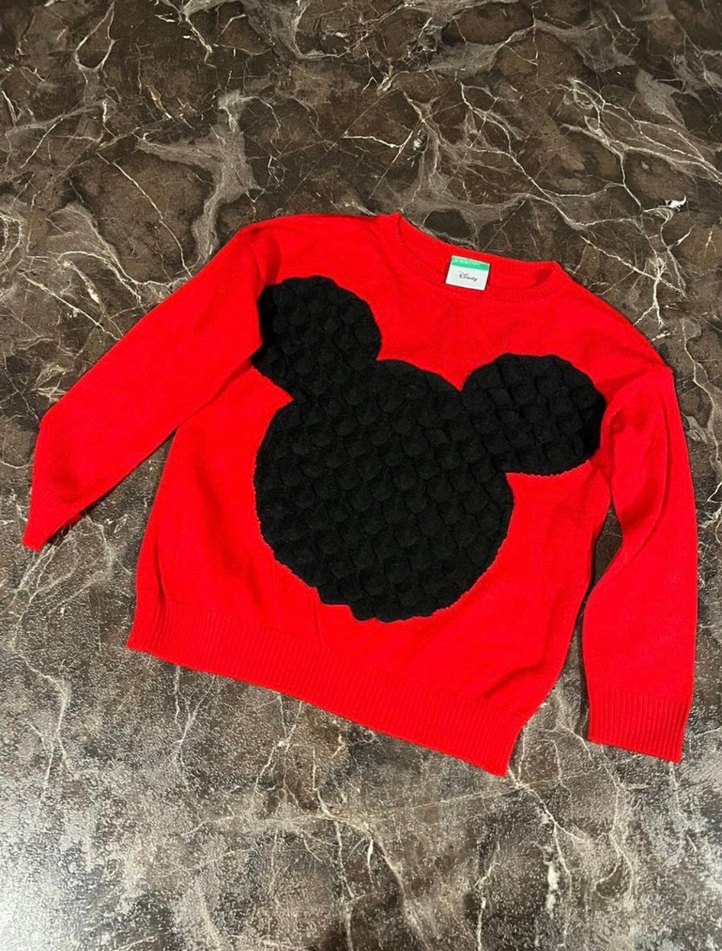Kırmızı renkli, uzun kollu çocuk triko kazak. Yumuşak örgü kumaştan, bol kesim ve nakışlı desenli, rahat ve şık bir sokak stili ürünü.