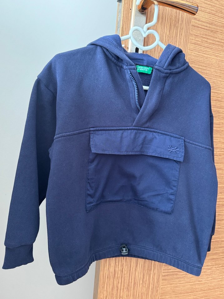 Erkek çocuklar için lacivert renkli, kapüşonlu ve uzun kollu sweatshirt. Rahat kesim ve yumuşak, sıcak kumaştan üretilmiştir. Önünde cep bulunmaktadır. Az kullanıldı sorunu yoktur.rengi fotoğraf kaynaklı soluk gibi duruyor ama soluk değildir.