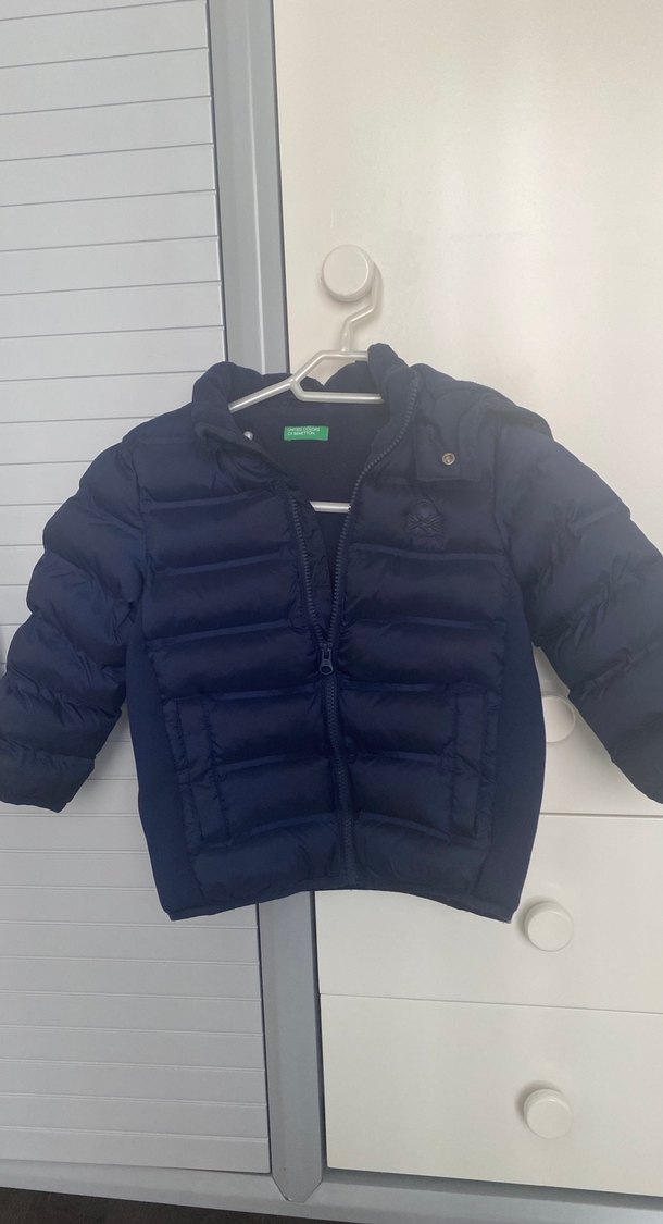 Lacivert renkli, kapüşonlu , erkek çocuk mont.yumuşak ve sıcak dokulu. 3-4 yaş grubu fakat 2.5 yaşa da uygun. Yanda lastikli kısım var bu sayede genişleyebilme özelliğine sahip.