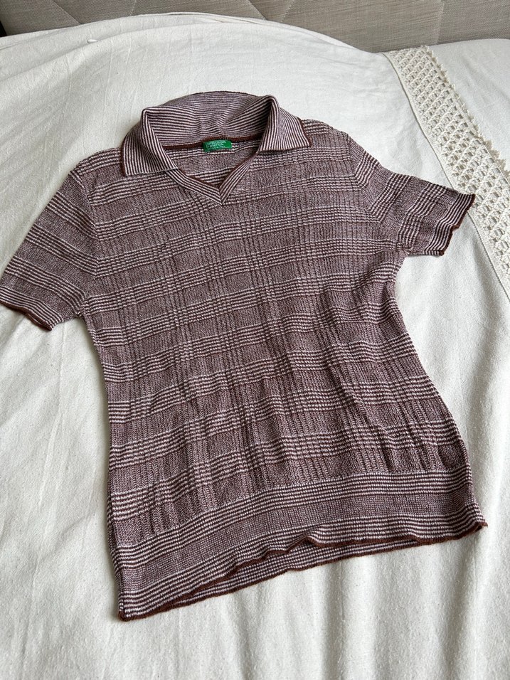 Benetton Örgü Kahverengi Kısa Kollu Polo Tişört