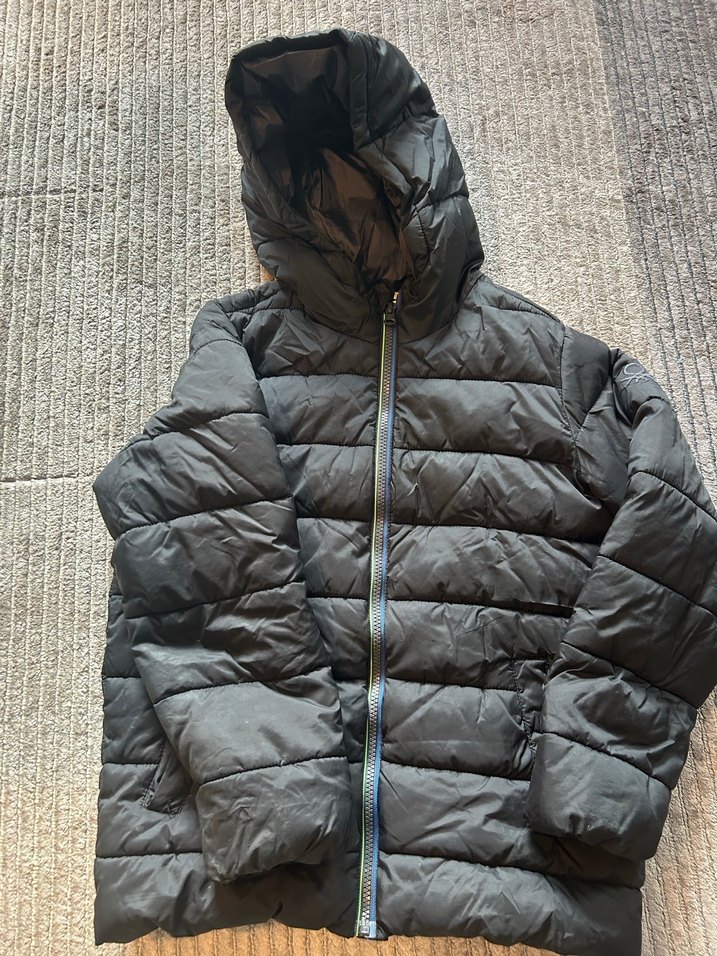 Fermuarlı ve kapüşonlu, yumuşak ve sıcak kumaştan üretilmiş, siyah renkli ve normal kesim erkek çocuk montu. Sokak tarzına uygun.8-9 yaş.