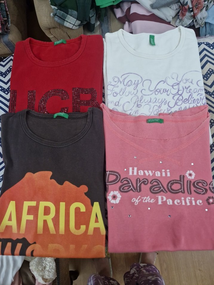 Benetton tshirt Renkli, Baskılı Kız Tişörtü, Kısa Kollu, Pamuk