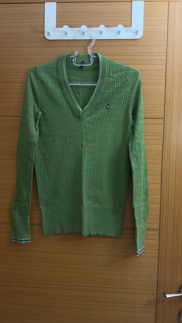 Benetton V Yaka Yeşil Triko Kazak