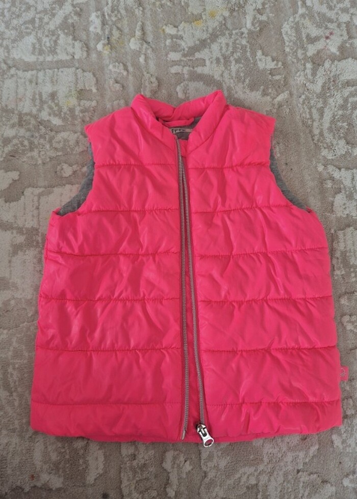 neon pembe yelek,kızım çok severek giydi hatta küçüldüğü için üzgün.hicbir kusuru yok.krese gittiği için etikete isim yazıldı sadece.