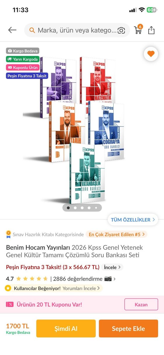 2026 KPSS için Genel Yetenek, Coğrafya, Tarih ve Vatandaşlık tam çözümlü soru bankası seti. 3 taksit seçeneği ve 4.7 puanlı, 2886 değerlendirmeli.