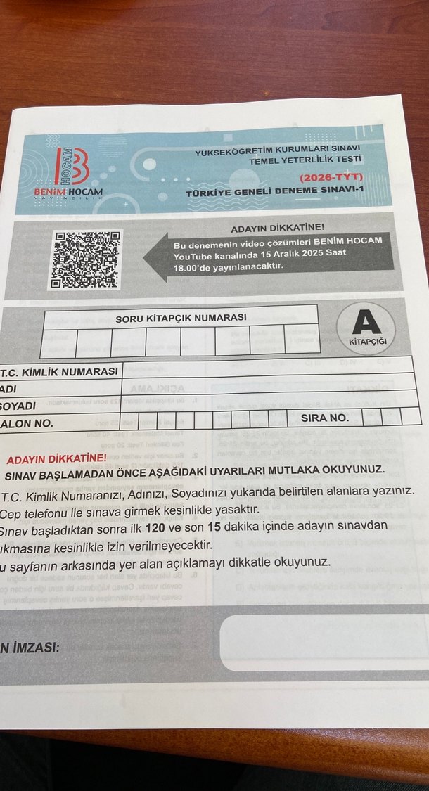 Benim Hocam 2026 TYT Deneme Sınavı Kitapçığı