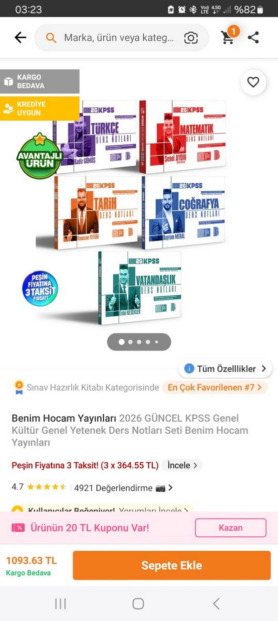 Benim Hocam 2026 KPSS Genel Kültür ders notları seti Türkçe, Matematik, Tarih, Coğrafya ve Vatandaşlık konularını içerir. Güncel içerik ve taksit seçeneğiyle sunulur. atandığım için satıyorum sıfır kitaplar