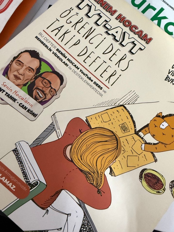 Benim Hocam TYT AYT Öğrenci Ders Takip Defteri, eğlenceli çizimlerle ve Benim Hocam YouTube ders destek videolarıyla birlikte sunulmuştur. bomboş