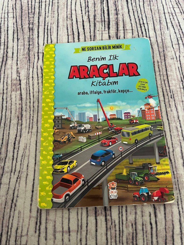Benim İlk Araçlar adlı çocuk kitabı, araba, itfaiye, traktör ve kepçe gibi araçları tanıtıyor. Ufak tefek kusurları var ama kullanıma engel değil 8 sayfa