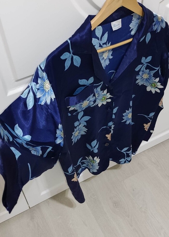 İyi durumdadır. Benim UNDER WEAR L Parlament Mavi saten çiçekli cepli pijama üstü