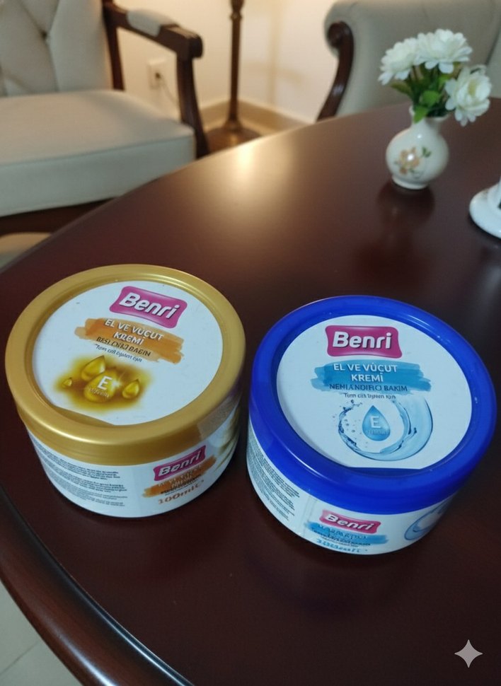 Benri el ve vücut kremleri, üstünden çok az kullanıldı ikisi de dolu duruyor alana hayırlı olsun