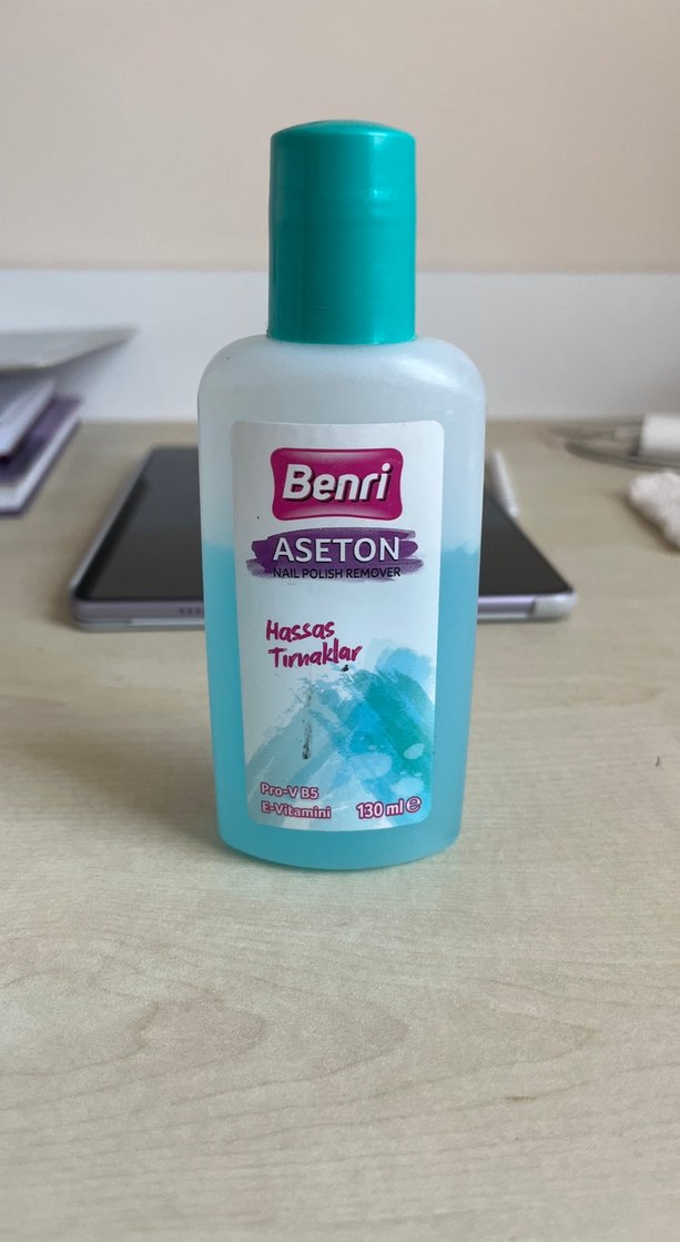 görüldüğü kadarı kullanıldı. Benri hassas tırnaklar için özel olarak formüle edilmiş, Pro-Vitamin B5 ve E vitamini içeren 130ml asetondur.