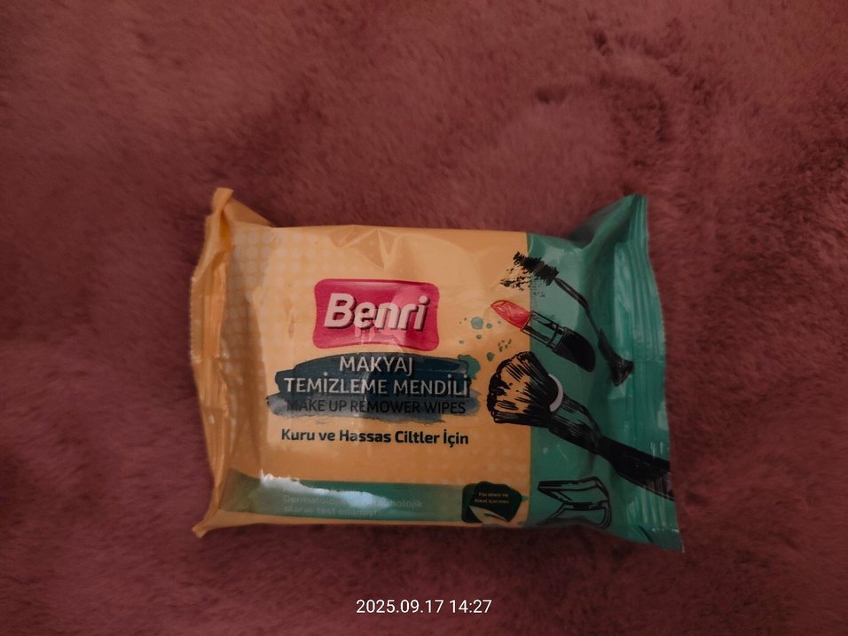 Benri makyaj temizleme mendili, kuru ve hassas ciltler için nazikçe temizler. Birkaç tane kullanıldı hatırlamıyorum 2 ya da 3 tane kullandım.