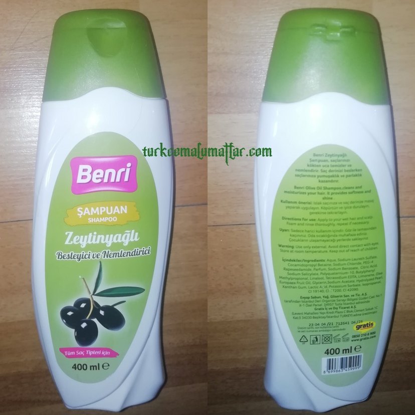 Benri Zeytinyağlı Şampuan 400ml, tüm saç tipleri için nemlendirici ve besleyicidir. Saçı yumuşak ve sağlıklı tutar.