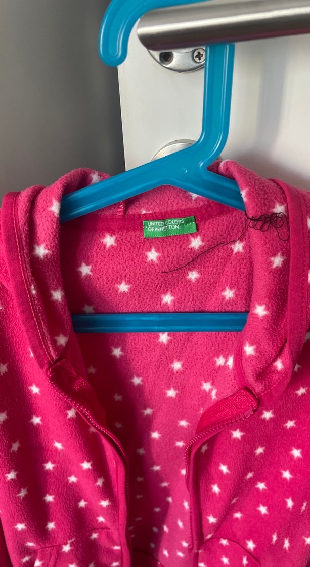 Gayet iyi durumda yeni gibi Yumuşak ve sıcak kumaştan yapılmış, yıldız desenli renkli pembe kız çocuk bornozu.