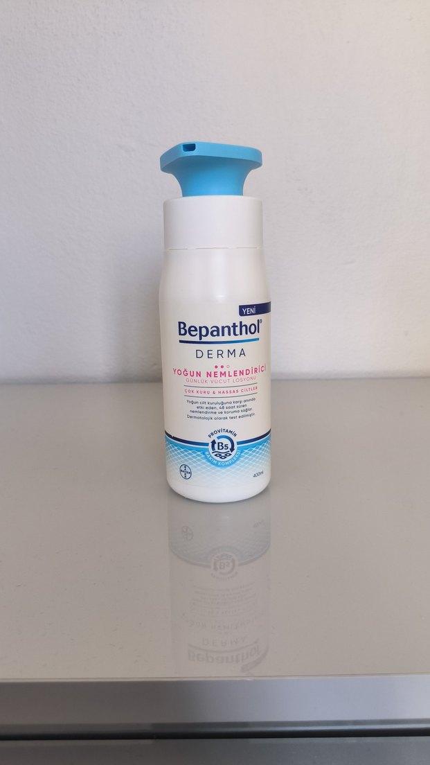 Bepanthol Derma vücut losyonu, çok kuru ve hassas ciltler için yoğun nemlendirme sağlar. 48 saat nem ve koruma sunar, provitamin B5 içerir. Hiç kullanılmadı