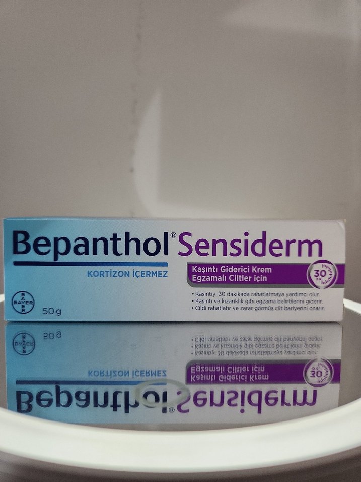 Bepanthol Sensiderm krem, 30 dakikada kaşıntıyı hafifletir ve egzama eğilimli ciltler için uygundur. Kortizon içermez ve cilt tahrişini azaltmaya yardımcı olur.