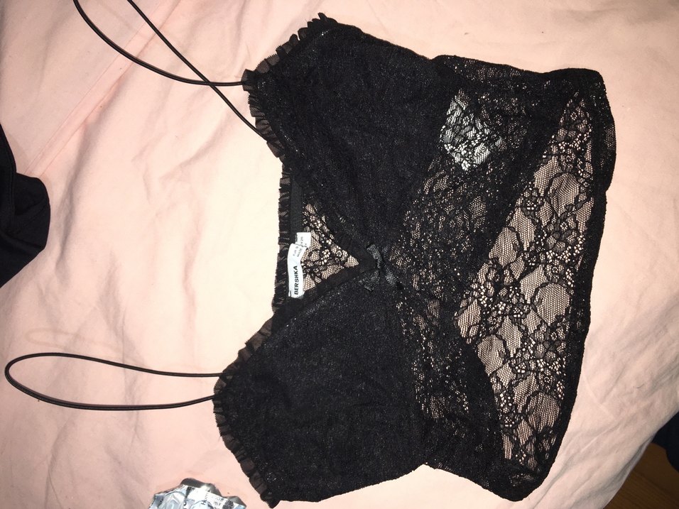 Siyah dantel kumaştan, ince askılı, midi uzunlukta gotik tarzda sütyen.