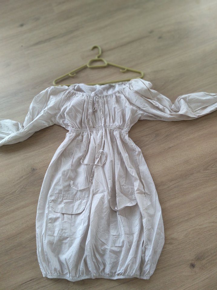Kullanılmamış straplez yakalı bol kesim çan elbise. Hafif kumaştan, vintage tarzında, günlük kullanıma uygun. Medium ve large beden uyumludur.