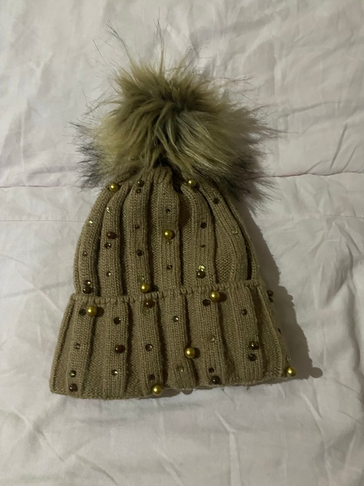 Bej renkli, boncuk detaylı örgü kadın bere, yumuşak ve kabarık ponpon ile bohem ve retro tarzları birleştirir. ❄️