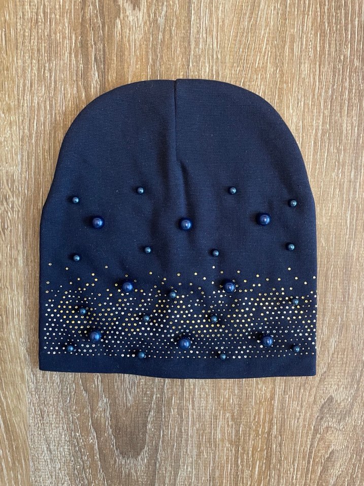 Lacivert renkte pamuklu ve incili detaylarla süslenmiş bere.Yurtdışında alındı.6-10 yaş.Sıfır ürün.