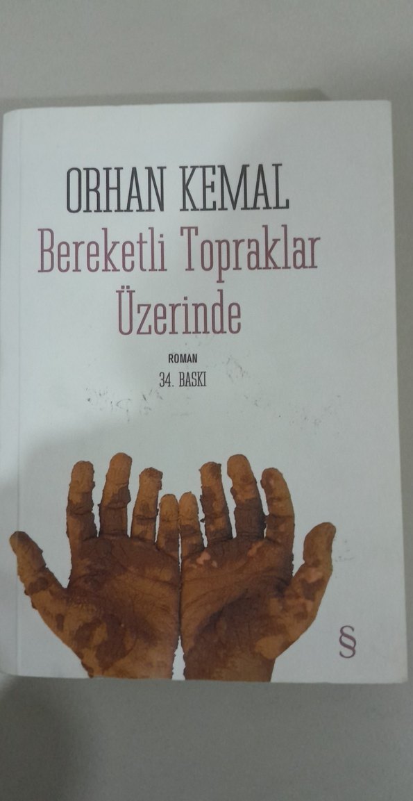 Orhan Kemal'in Bereketli Topraklar Üzerinde adlı romanı, 34. baskı olarak, ellerin illüstrasyonuyla kapaklı sunuluyor. ürünün 1 sayfası kopuk