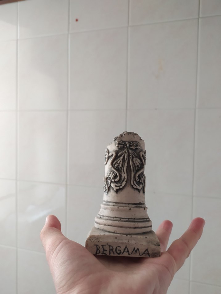 Bergama Yazılı Bej Figürin / Biblo YILANLI SUNAK SÜTUN BİBLO