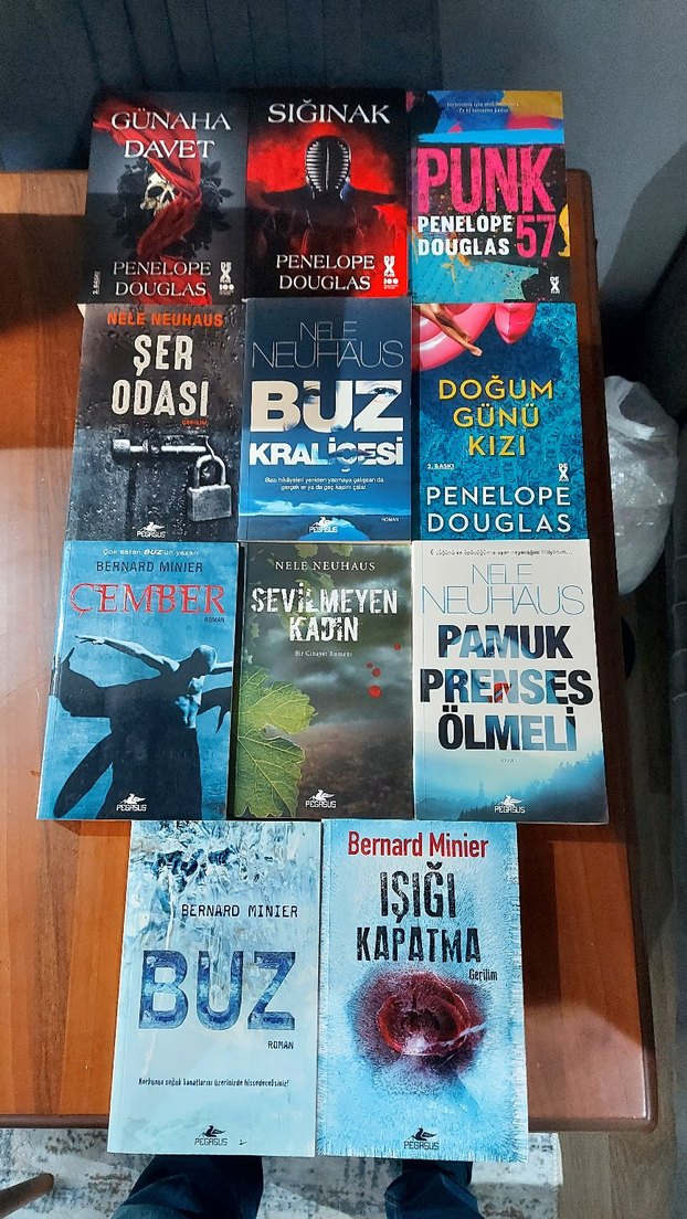 Bernard Minier ve Penelope Douglas'ın 'Işığı Kapatma,' 'Pamuk Prenses Ölmelı,' 'Doğum Günü Kızı' gibi romanlarından oluşan kitap seti.