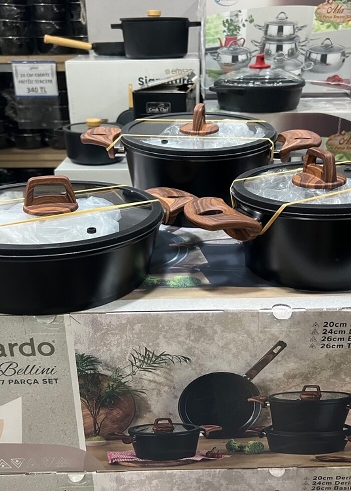 Bernardo 7 Parça Granit Set Bernardo Döküm 7 Parça Tencere Tava Seti Derin Tencereler 20 (2lt) – 24 cm (5.5 lt) Basık Tencere 26 cm (3.5 lt) Tava 26 cm Döküm Alüminyum gövde üzerinde üst düzey çizilmezlik ve yapışmazlık sağlayan granit görünümlü, güçlendirilmiş 3 katlı iç dış kaplaması ile mutfağınıza şıklık katar. Döküm gövdesi sayesinde çabuk ısınıp, ısıyı uzun süre muhafaza eder.