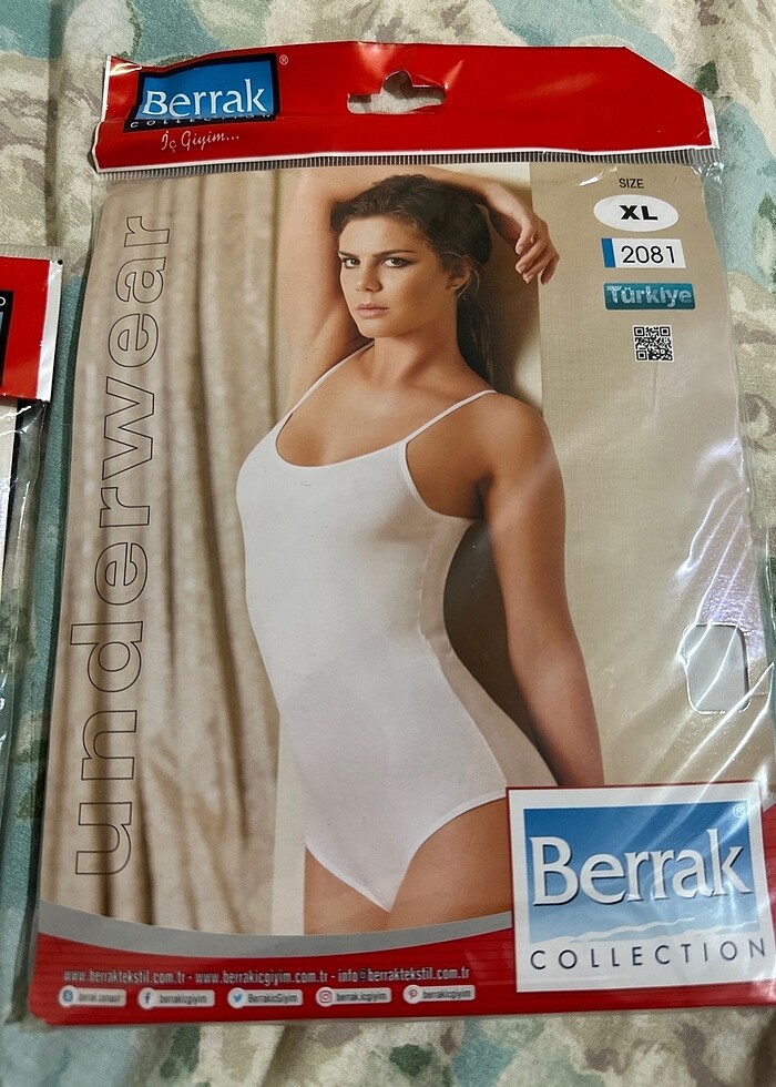 Berrak iç giyim kadın çıtçıtlı (zıbın) kancalı body. Paketleri hiç açılmadı tekli satılmakta. 1 adet siyah xl 4 adet beyaz xl mevcuttur.