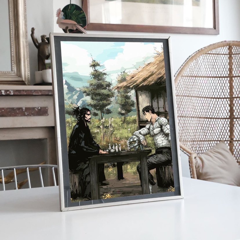 ÜRÜN AÇIKLAMASI; -(A3) 30 X 42,0 СМ (ÇERÇEVESİZ) boyutundadır - Ürünlerimizin hepsi 300gsm kalınlığında ve premium inci kağıtlara basılarak oluşturulmakta. En kaliteli püskürtmeli dijital yazıcılarda oluşturularak olabilecek en canlı renk paletleriyle ortaya çıktı. İllüstrasyonla oluşturulan bu tablo, "Berserk" ve "Vagabond" gibi iki epik manga ve anime serisinin karakterlerini bir araya getiriyor. Guts ve Miyamoto Musashi gibi ikonik karakterlerin buluştuğu bu özel tasarım, her iki serinin büyüsünü ve karakterlerini yansıtıyor. Tablonun merkezinde, Guts ve Miyamoto Musashi karakterleri, epik bir sahnede veya etkileyici bir illüstrasyonda bir arada bulunurlar. Bu tasarım, her iki karakterin gücünü, kararlılığını ve cesaretini yakalar.