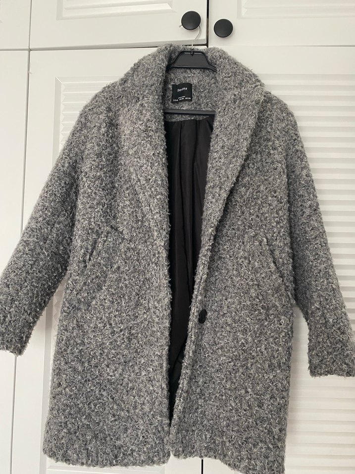 Bershka 34 beden Gri Kabarık Dokulu Kaban