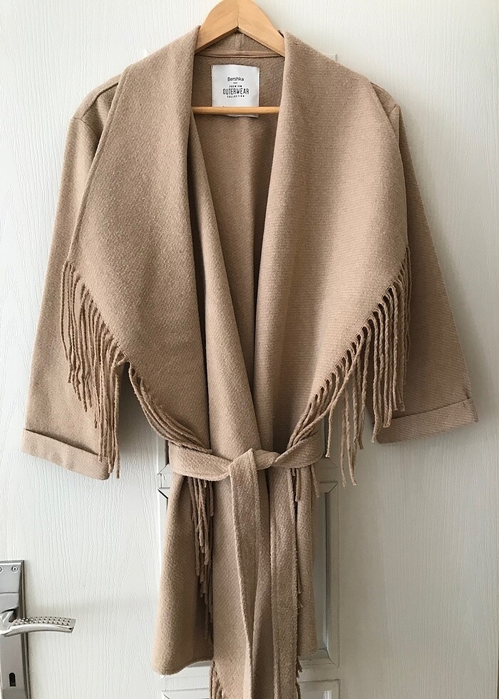 Bershka pelerin gibi ince diş giyimdir. Materyali ince yün gibidir. Siyah rengini kullandigim icin bu rengini giyemedim.