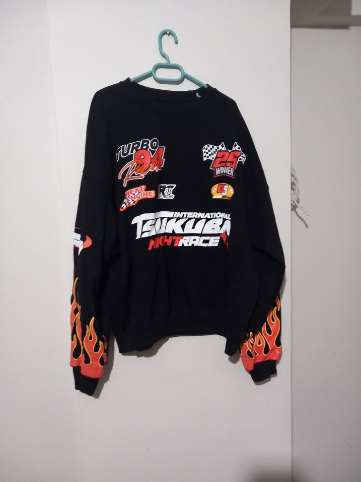 Bu siyah kadın sweatshirtü, bol kesim, uzun kollu ve bisiklet yaka özellikleriyle baskılı rock punk tarzı grafiklere sahiptir. Örme, yumuşak ve sıcak kumaş, kollarda alev desenleriyle sokak modası havası yaratır. Günlük kullanım için uygundur.
