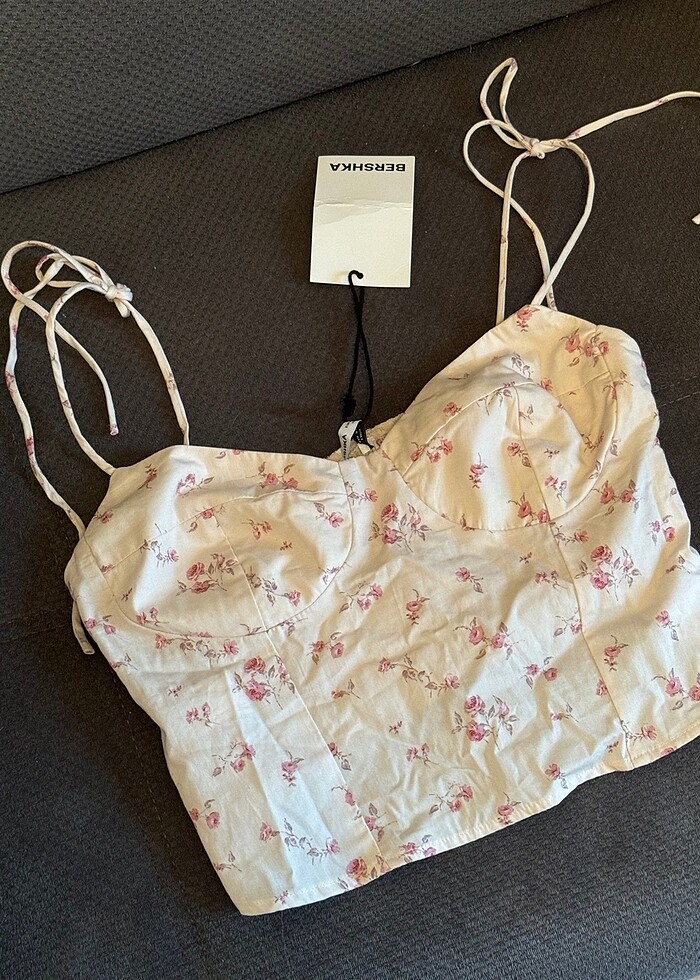 Bershka askılı çiçekli crop top
