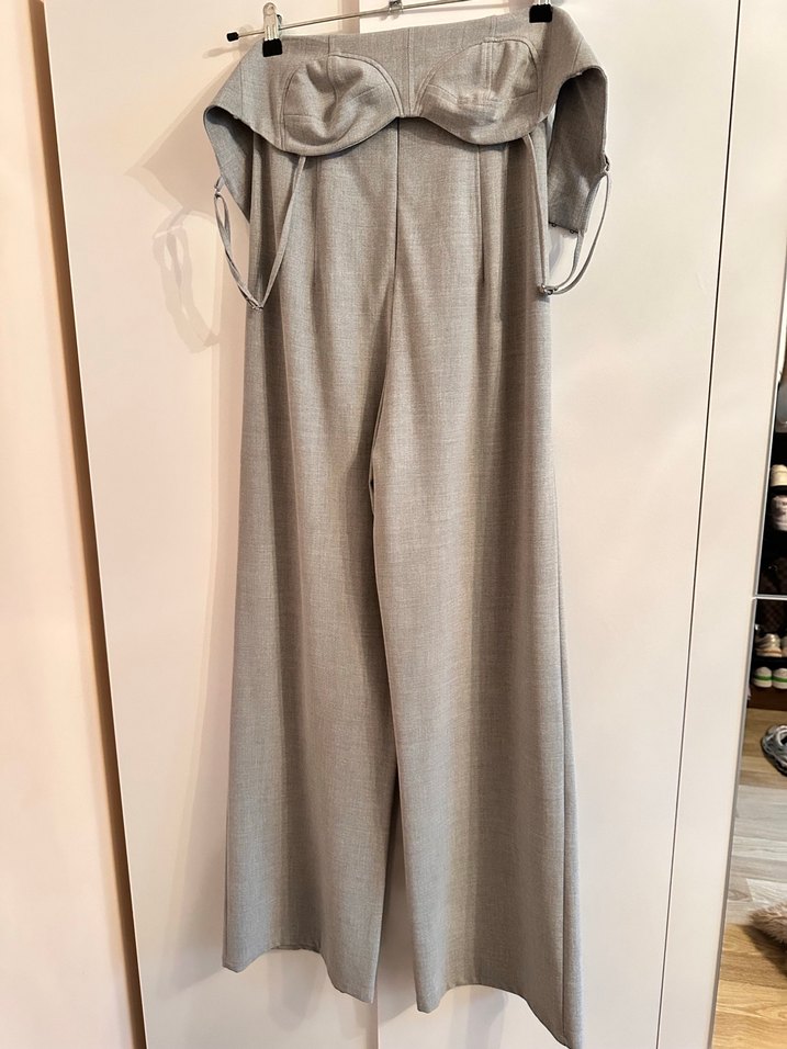 Bej keten kumaştan, kemerli ve regular fit kesime sahip uzun kadın pantolonu. Düz ve modern tasarımıyla ofis için uygundur.