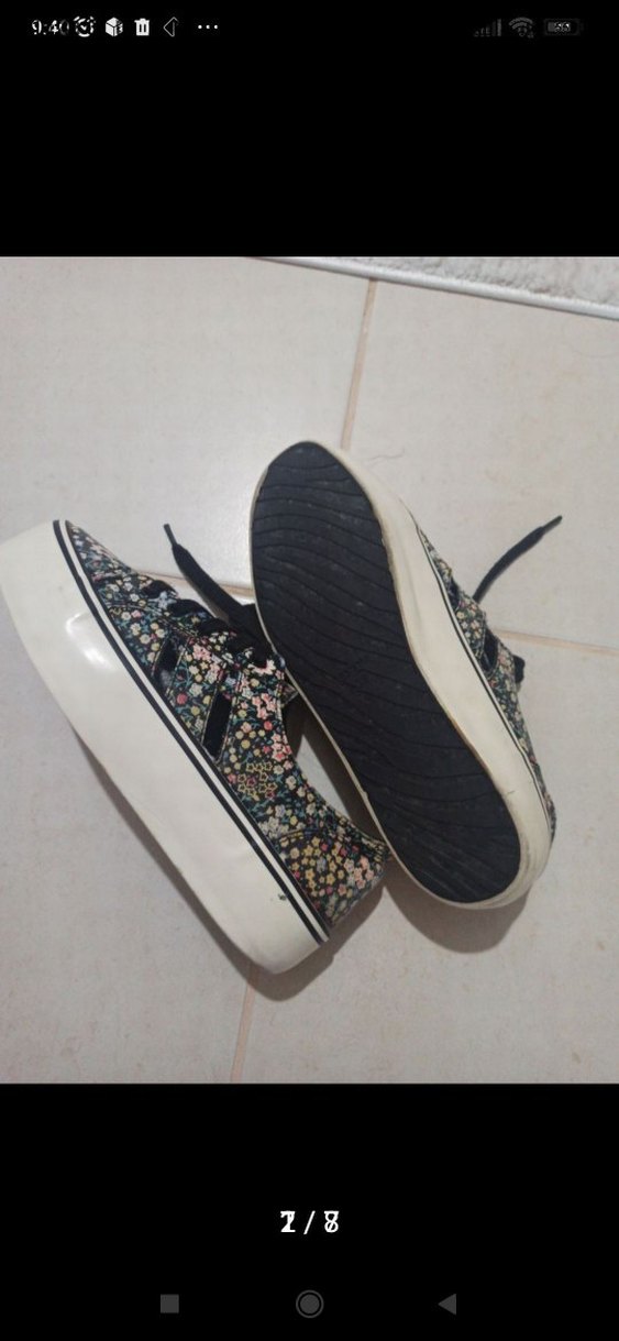 Bershka ayakkabı çiçekli 38 giyilmiştir şu anda da kullanımına engel bir durum yokturÇiçek desenli, renkli kadın spor ayakkabısı, platform topuklu ve kauçuk tabanlıdır. Cırt cırtlı yapısıyla kolay kullanım sağlar, sokak stili için uygundur.