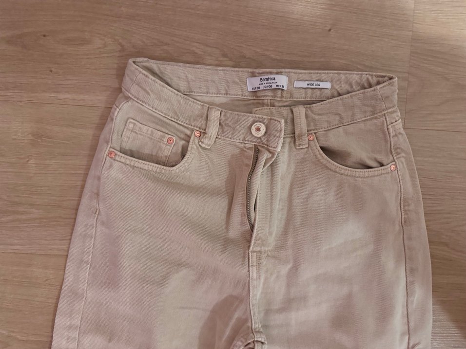 BERSHKA Bej Düğmeli Kadın Keten Pantolon