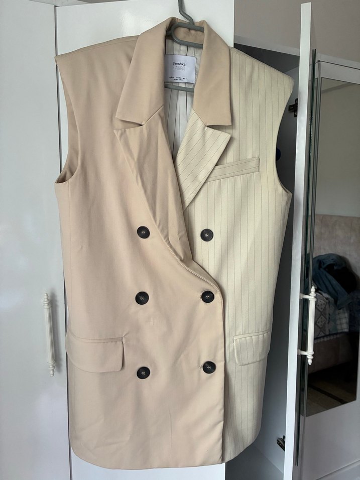 Bershka Bej Düğmeli Kolsuz Midi Blazer