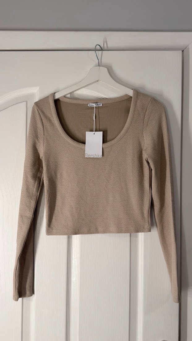 Bej renk, uzun kollu, ince dokulu keten kumaştan, dar kesim ve yuvarlak yakalı kadın trikosudur. Günlük rahat ve minimalist tarz için uygundur.